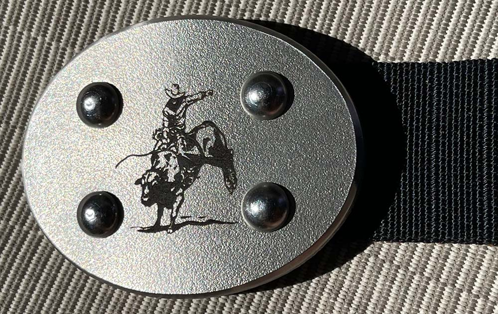 Note: Image engraving is not included. The Gray Man and dark Black Ops finish FRENZY buckles make great canvases for laser engraving, which we may be offering as an option soon. Cowboy and nautical themes come to mind!