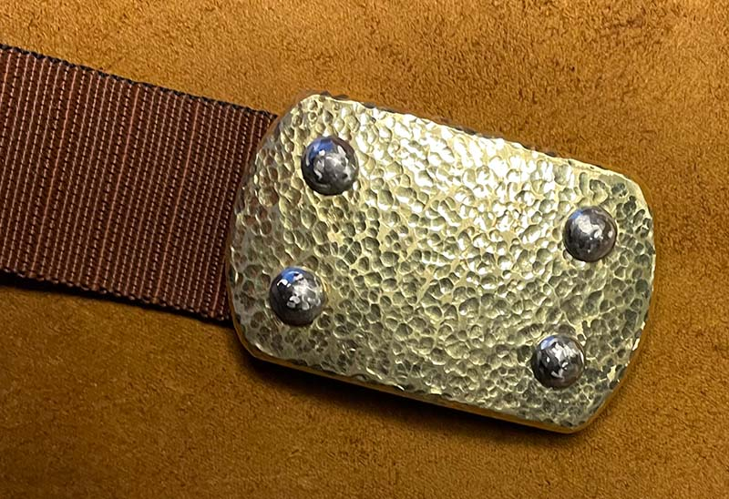 SIEGE Kalahari belt: 6.5 ounce solid Brass LARGE buckle with Namib Sands finish and stainless steel bolts and prongs — bolted to custom 1.5″ high-density ballistic Nylon in the length you require, with either Black or Brown facing out.