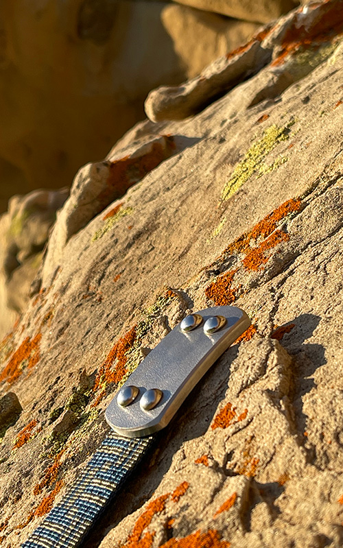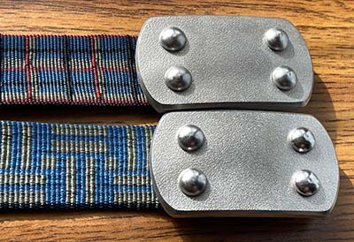 The photos above show alternative nylon color and pattern combinations. The patterned and red webbings are all strong and durable, but not in the same class as our custom high-density black/brown ballistic nylon. They will all last a long time but are not expected to go as long as the ballistic nylon before showing signs of fraying (replacement straps can be ordered from us should you wish to replace it or switch webbing type at any time in the future.)