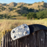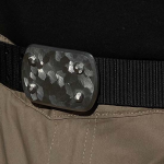 SIEGE Skukuza belt: 6 ounce solid stainless steel LARGE buckle with a dimensional hand-sculpted finish bolted to custom 1.5″ high-density ballistic Nylon in the length you require, with either Black or Brown facing out.
