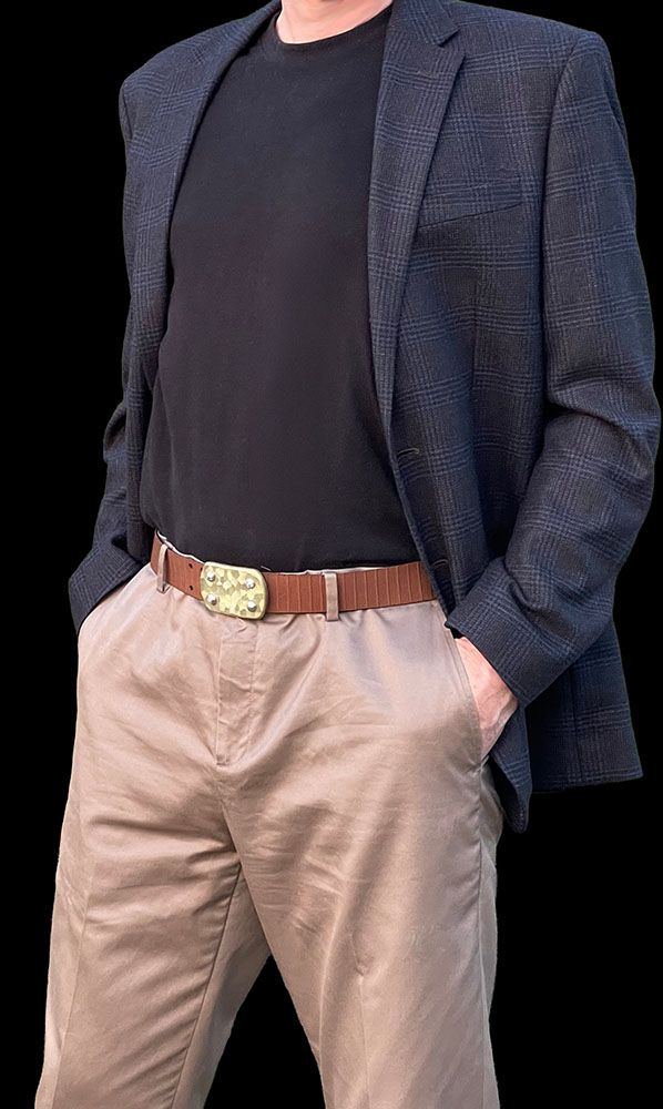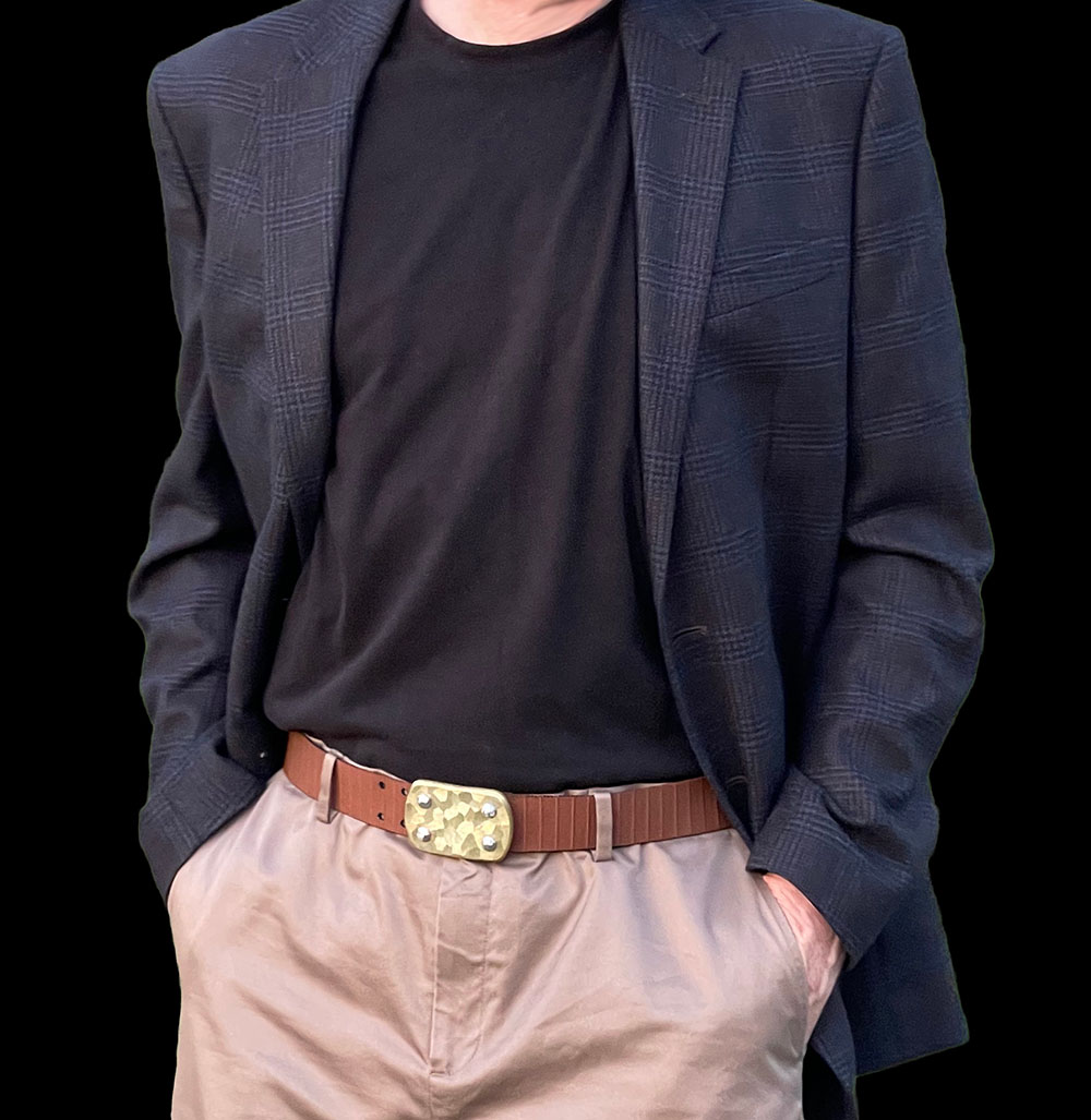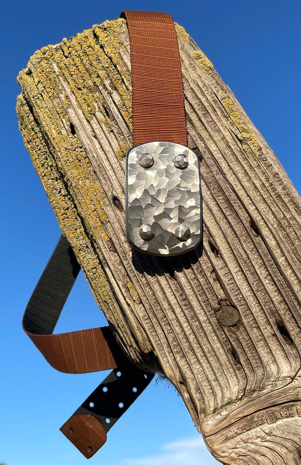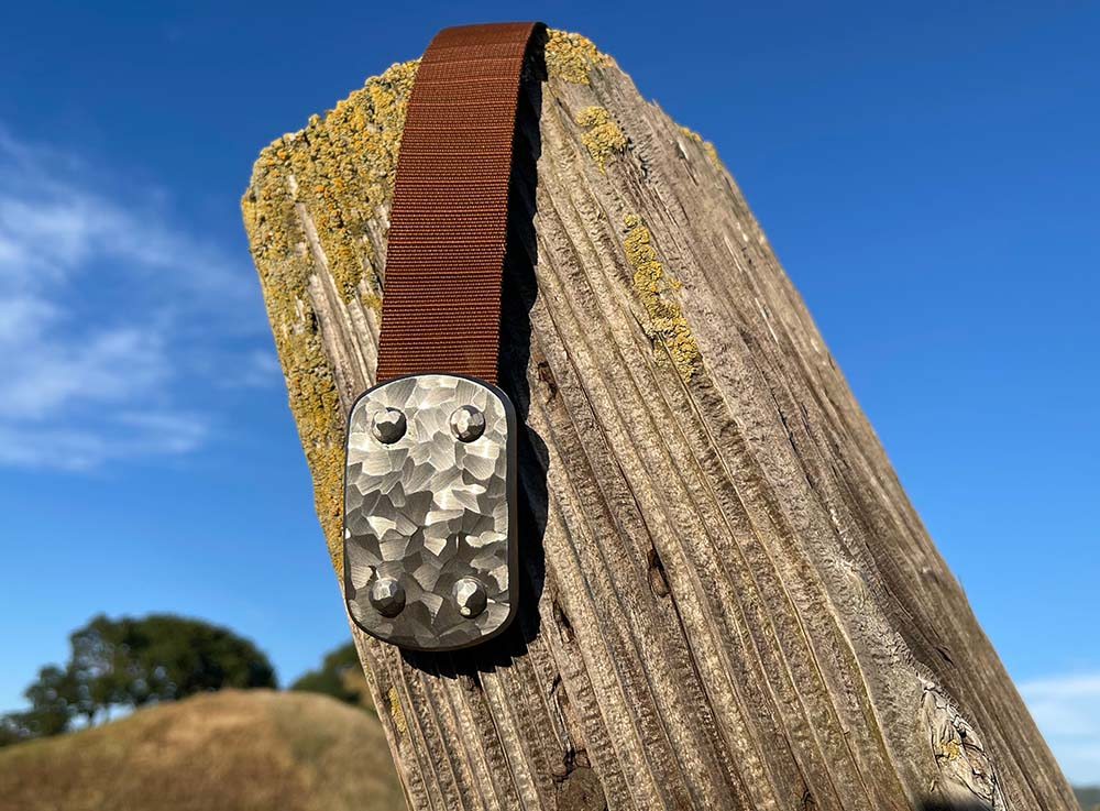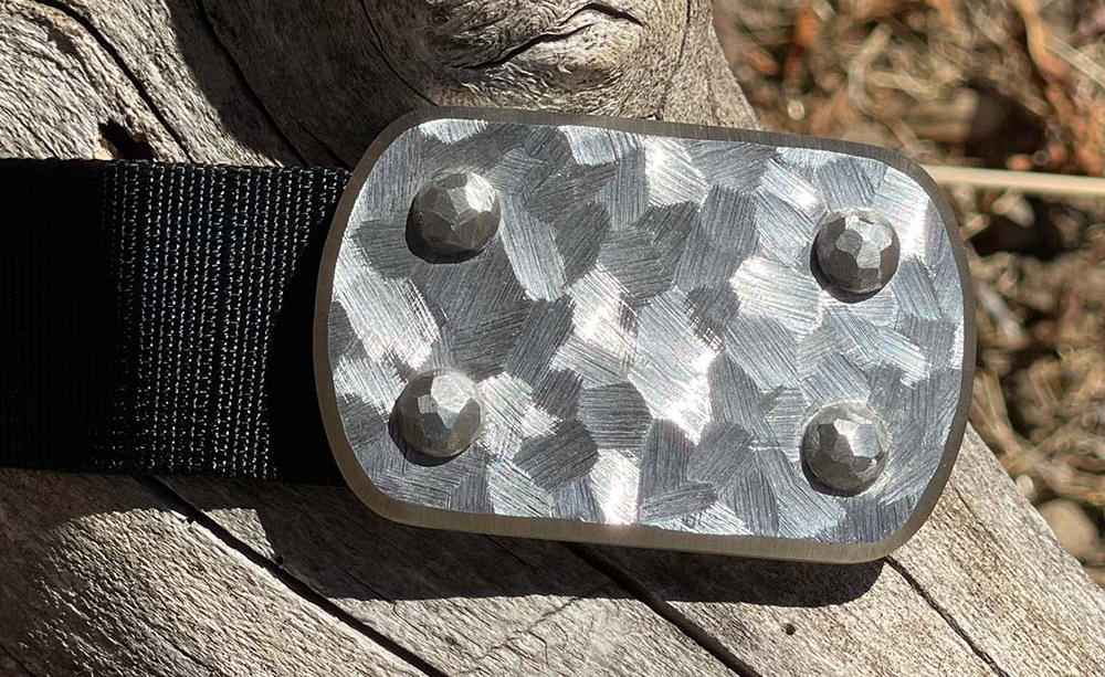 SIEGE Skukuza belt: 6 ounce solid stainless steel LARGE buckle with a dimensional hand-sculpted finish bolted to custom 1.5″ high-density ballistic Nylon in the length you require, with either Black or Brown facing out.