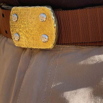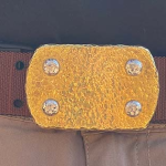 SIEGE Tsavo belt: 6.5 ounce solid Brass LARGE buckle with hammered and polished finish on front and sides, as well as bolt heads, with stainless steel bolts and prongs — bolted to custom 1.5″ high-density ballistic Nylon in the length you require, with either Black or Brown facing out.