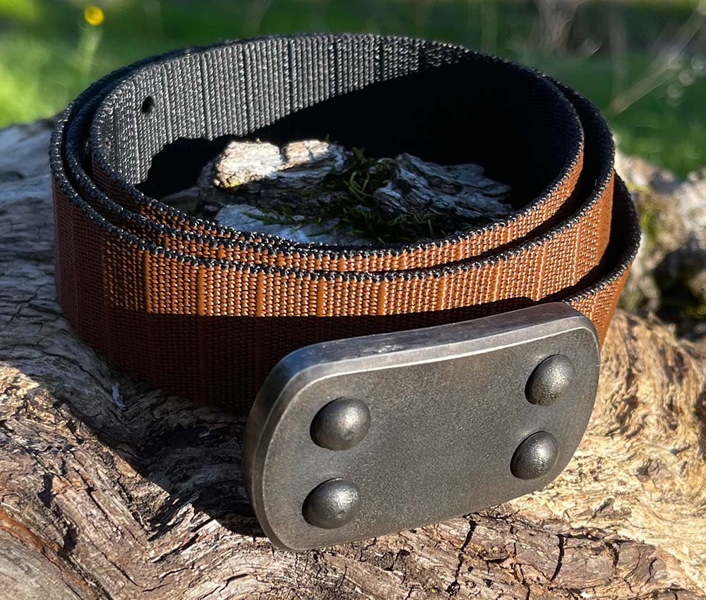• Our high-density ballistic nylon straps are black on one side and brown on the other, and are available for all buckles. They come bolted to the buckle with the color of your choice facing out. If you change your mind on the color, a 7/16″ hex wrench can be used to unbolt the strap, and then after flipping it over, to re-bolt it to the buckle.