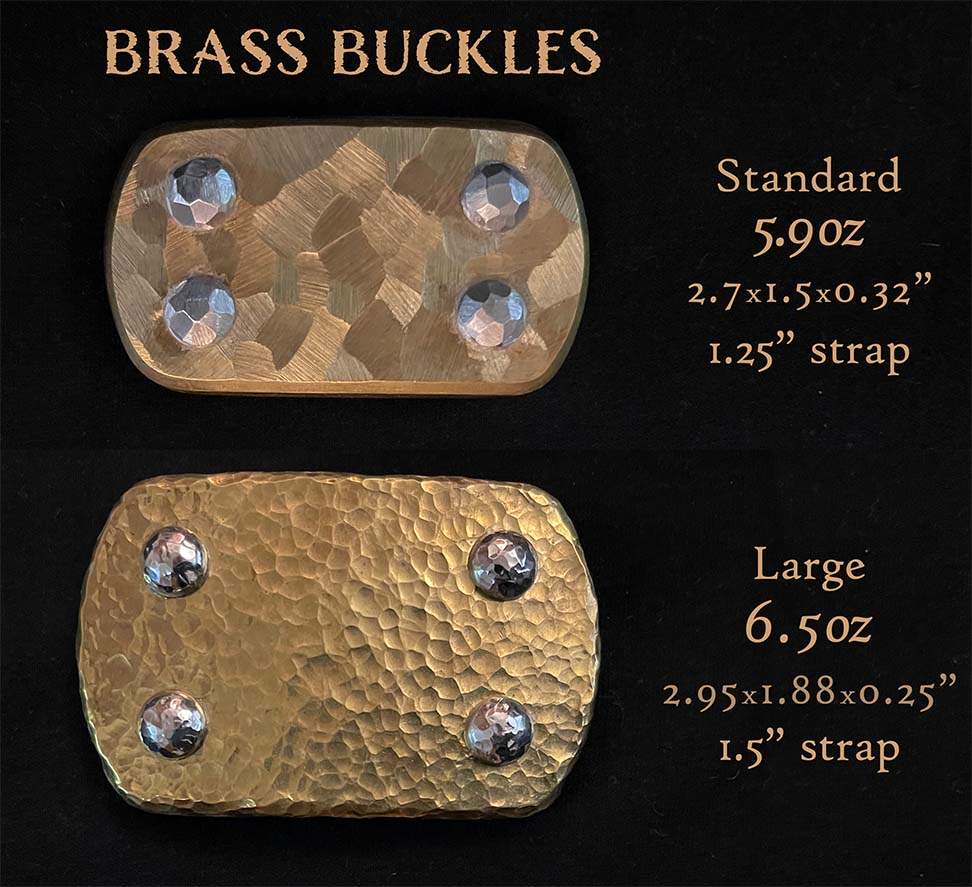 NOTE: The sculpted and hammered finishes shown below are just two of the available options for brass buckles. Brass is softer than stainless steel, and has a bit more weight.